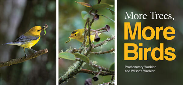 Birds and trees go hand in hand. Trees aren’t just part of the landscape, they’re lifelines for birds. They provide shelter in every season, safe nesting sites in spring and an endless buffet of insects that nourish adults and their hungry offspring. Simply put: more trees = more birds.